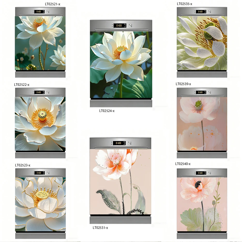 White Lotus Dishwasher Sticker, Elegant Floral Art Design, Waterproof Removable Kitchen Appliance Decor $4.76