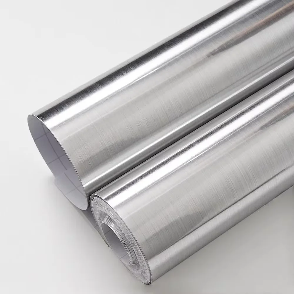 Brushed Silver PVC Self-Adhesive Removable Wallpaper Waterproof Oil-Proof Vinyl Sheet for Kitchen Appliances & Elevator Decal $4.45