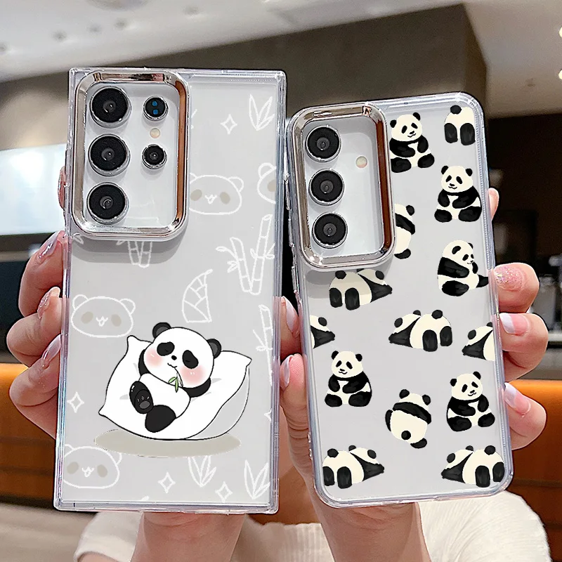 Plating Lens Baby Panda Case For Samsung Galaxy S24 S23 S22 Ultra S21 S20 FE A34 A52 A53 A14 A15 A25 A35 A55 A54 5G Cover $3.75