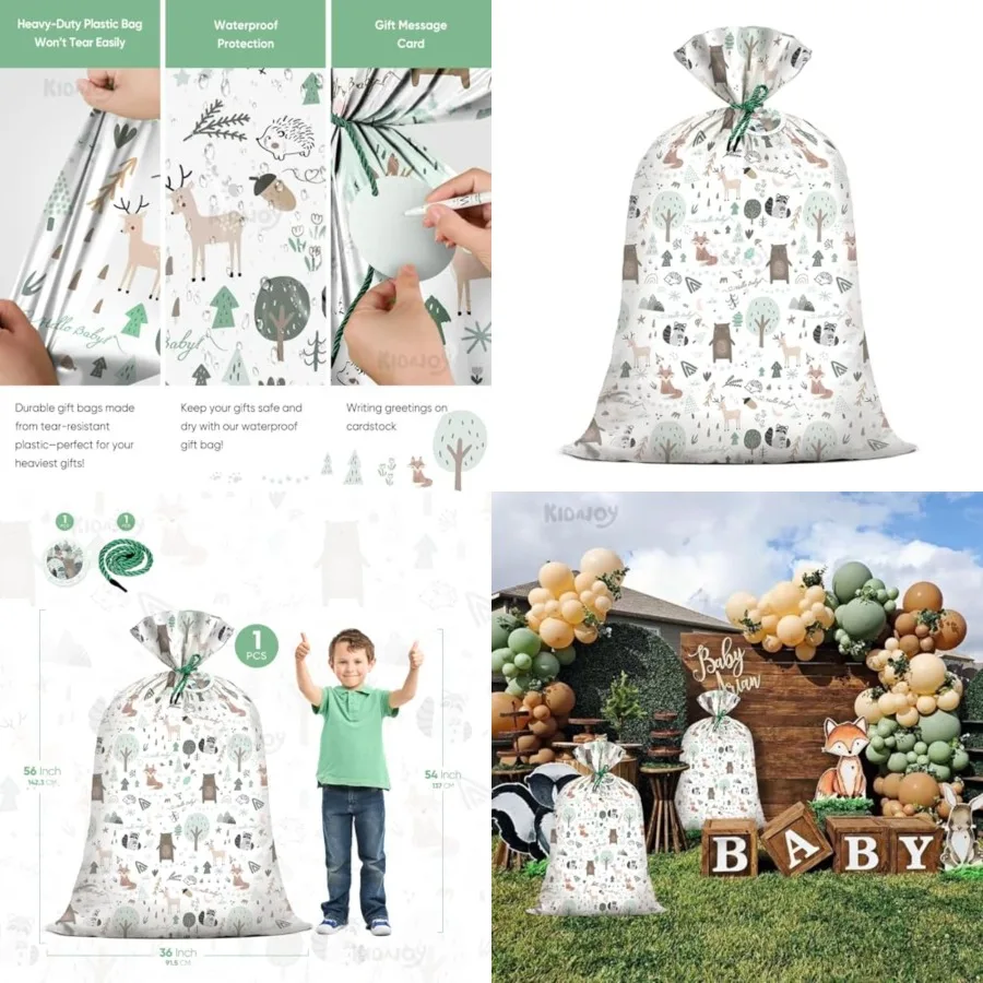 Extra Large Woodland Animal Baby Shower Plastic Gift Bags 5636 Inch Jumbo Forest Animal Present Gift Bag for Baby Girls and Boy $12.38