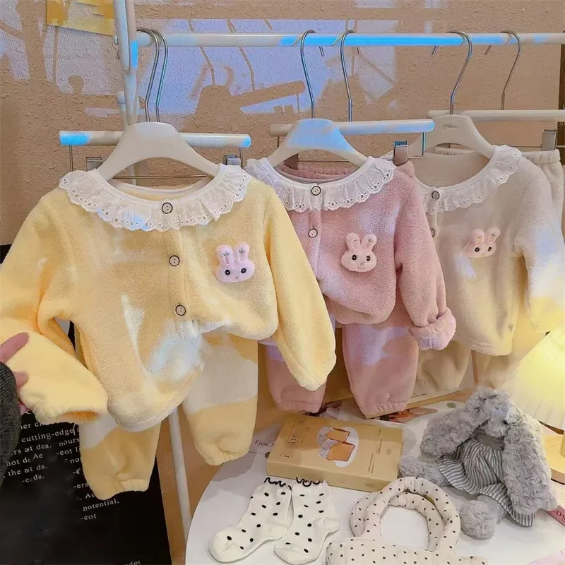 Cute Cartoon Girl Princess Lace Home Clothes Autumn Winter Baby Plush Casual Set Fashion Warm Children Pajamas Sleeping Clothing $30.15
