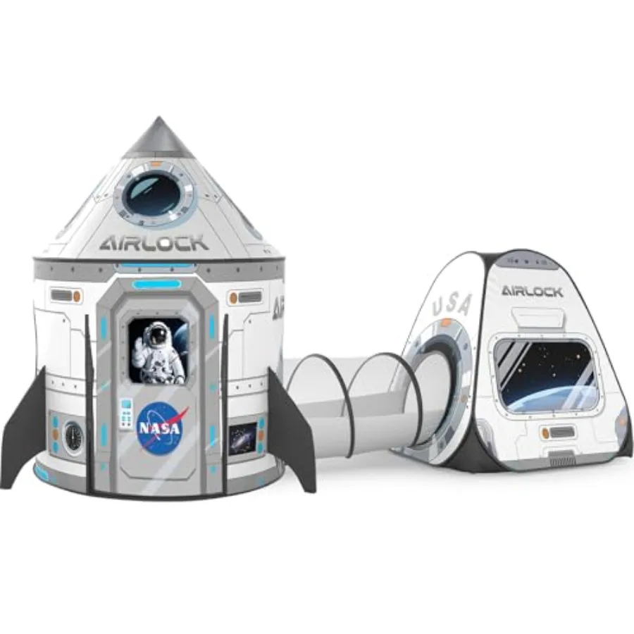3Pcs Rocket Play Tent for Boys: Pop Up Toddlers Spaceship Playhouse with Baby Crawl Tunnel Ball Pit and Castle Tent - Game Tent $49.64