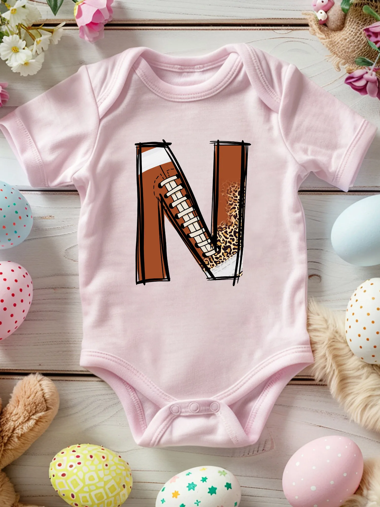 Leopard Football Alphabet N Unisex Baby Crawling Suit, 100% Cotton Soft Onesie, All-Season Wear Pink Bodysuit 190GSM $6.11