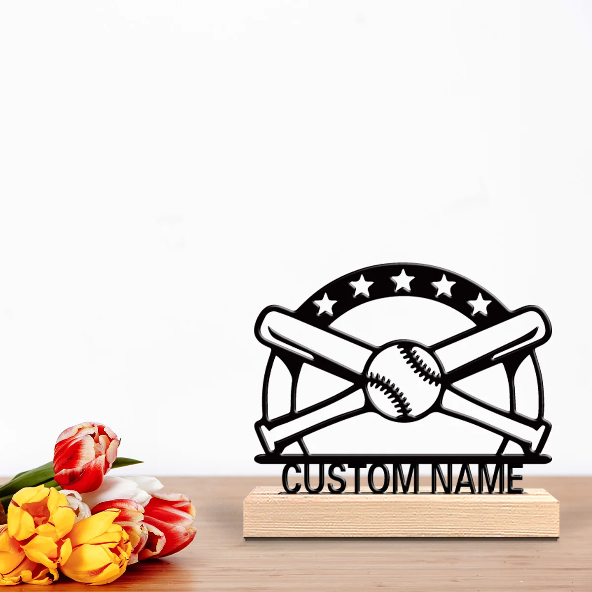1pc Cartoon Personalized Custom Baseball theme Metal Statues Sports Enthusiast Gift With Wooden Base Perfect For Bedrooms $11.34