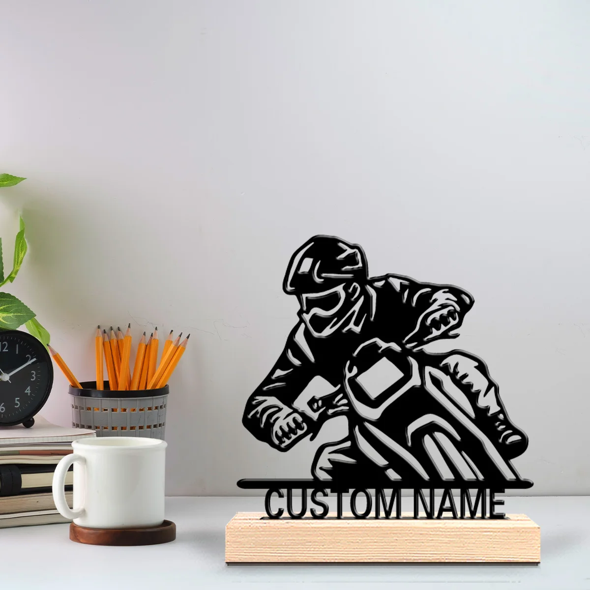 1pc Romantic Personalized Custom motorcyclist Metal Statues Whimsical Desk Decor with Wooden Base, Ideal for Nurseries, Librari $11.34