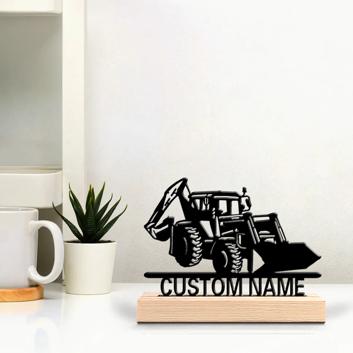 1pc Cute Personalized Custom Excavator-loader Metal Statues Modern Wooden Base Decor for Office, Living Room, Nature-Inspired $11.34