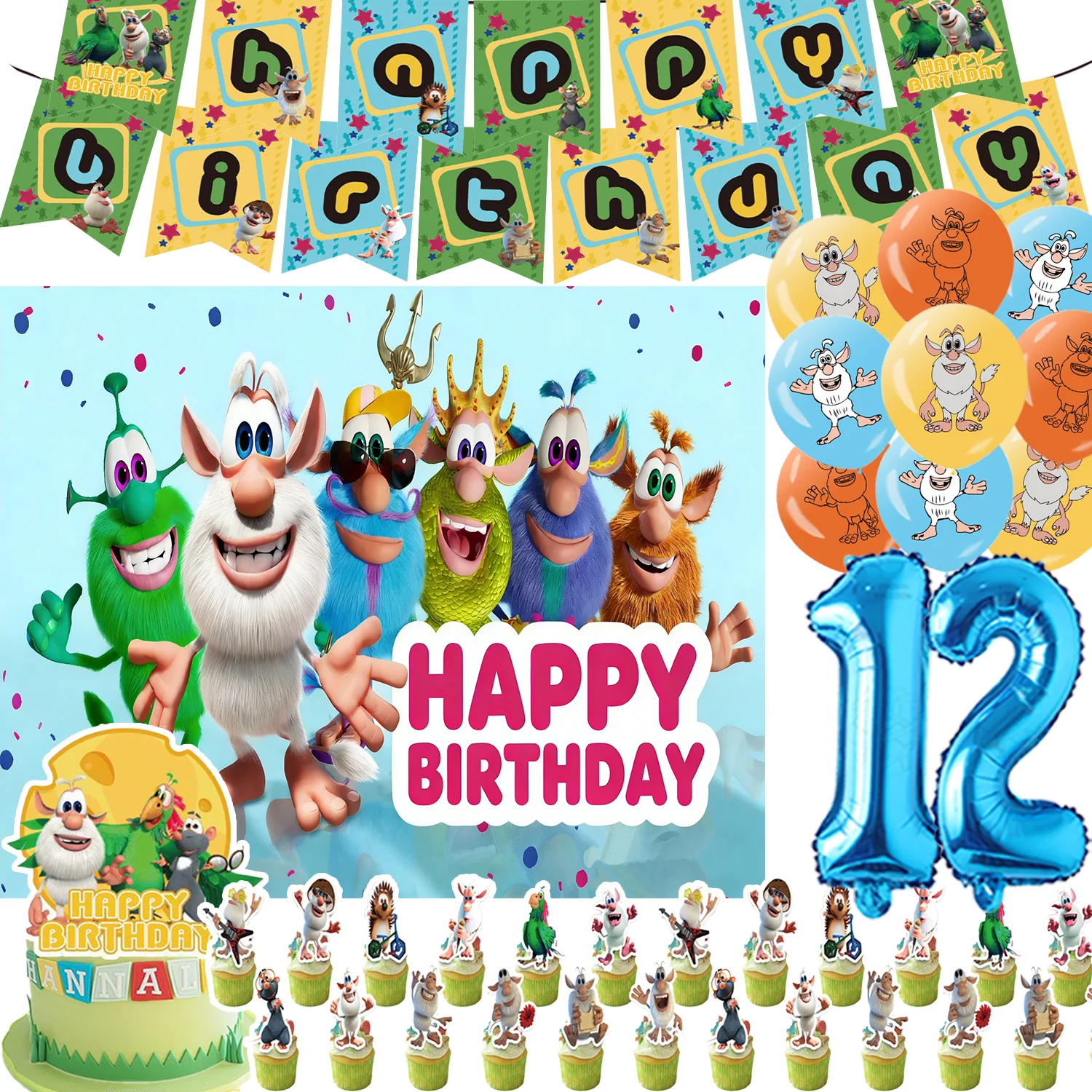 Cartoon Boobaed Theme Kids Birthday Party Supplies kawaii Game Balloon Cupcake Topper Banner Backgrounds Baby Shower Gifts Props $6.42