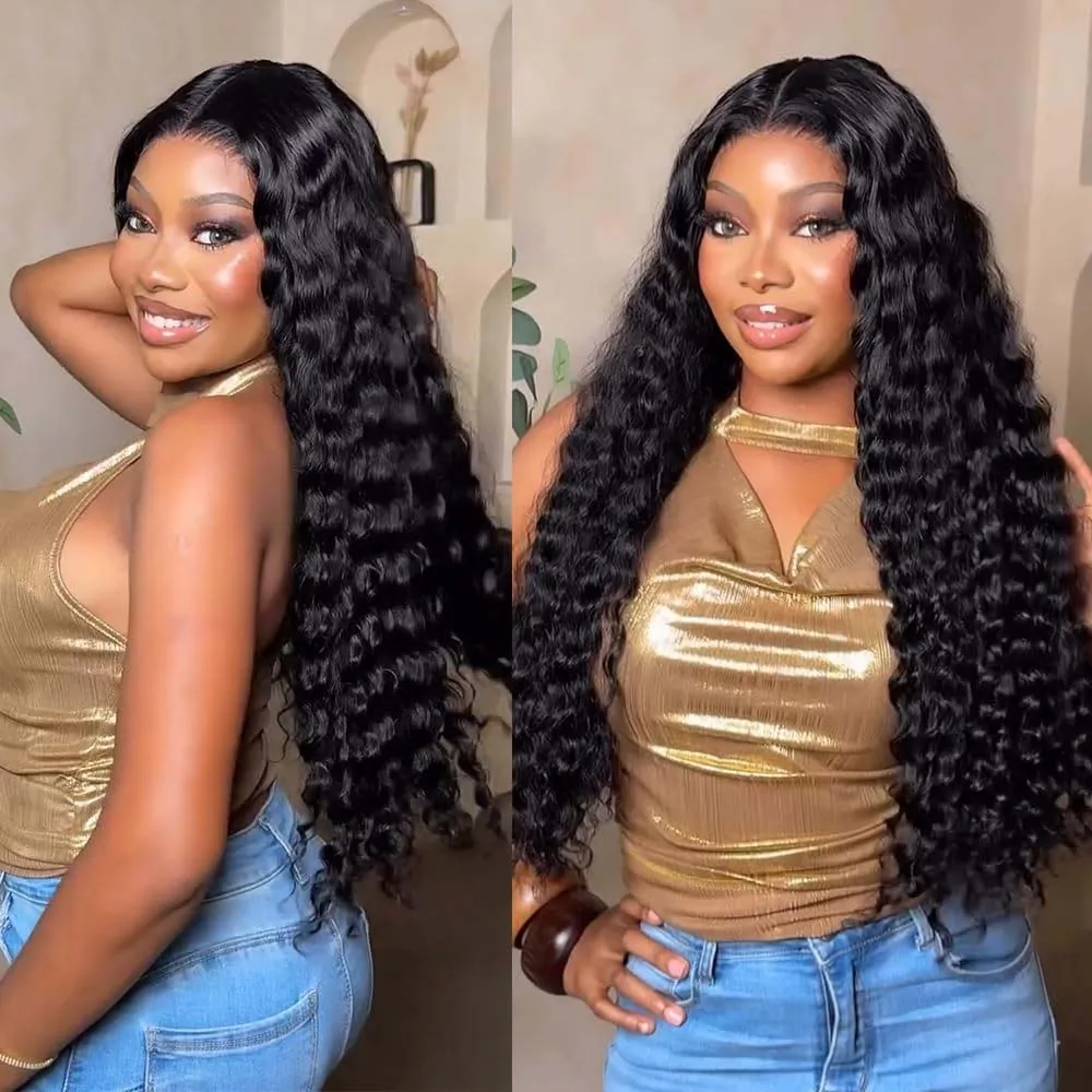 13x6 Deep Wave Wigs Human Hair 250 Density HD Lace Frontal Wigs Glueless Curly Wigs Human Hair Pre Plucked with Baby Hair $39.22
