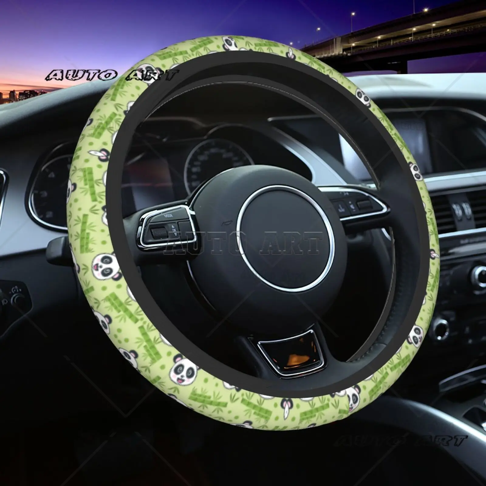 Cute Baby Panda Lovely Bear Animals Steering Wheel Cover for Women Anti Slip Auto Car Wrap Cover Accessories for Girl $5.30