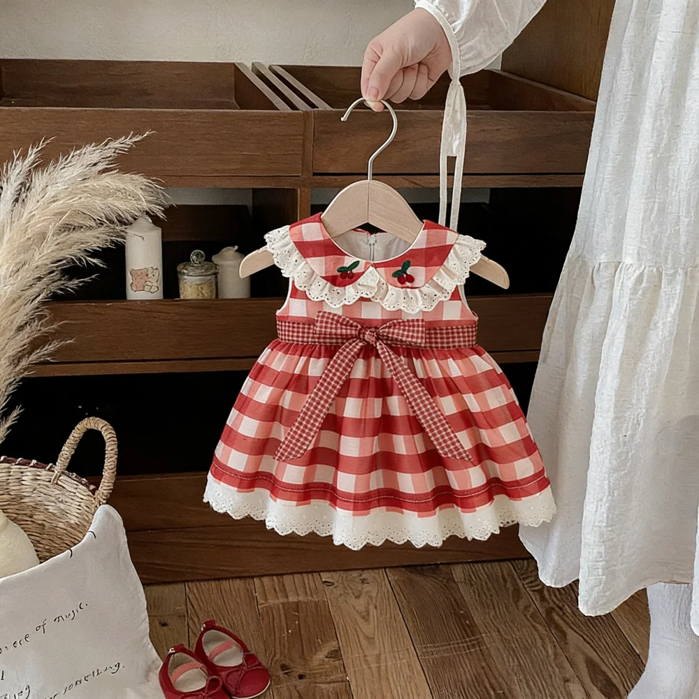 Baby Dress Summer Checkered Bow Sleeveless Girls' Dress Cute Collar Beach Baby Girls Dress Baby Girl Clothing $13.30