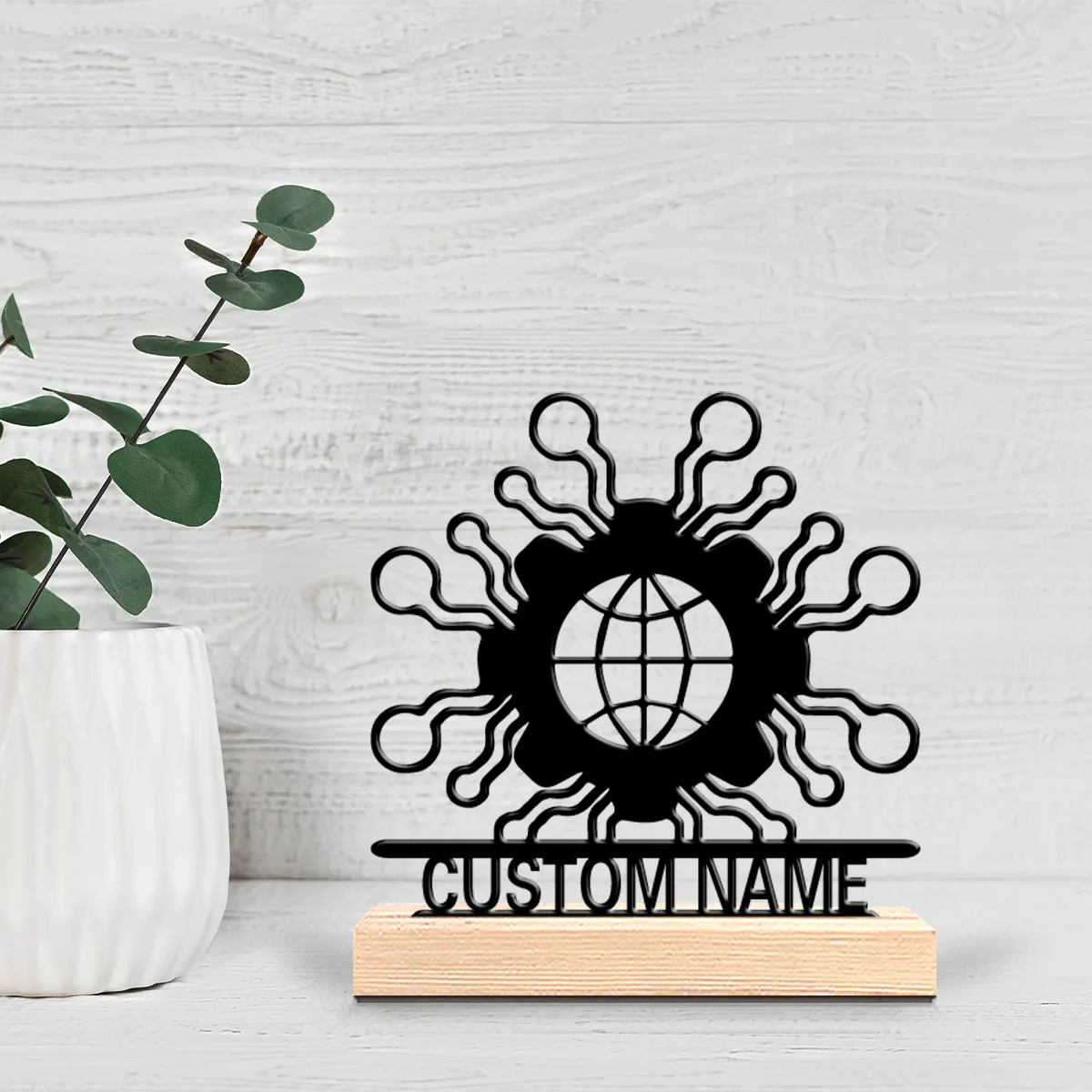 1pc Fun Personalized Custom Technology / Globalization Theme Metal Statues Science Decor with Wooden Base Perfect for Classrooms $11.34