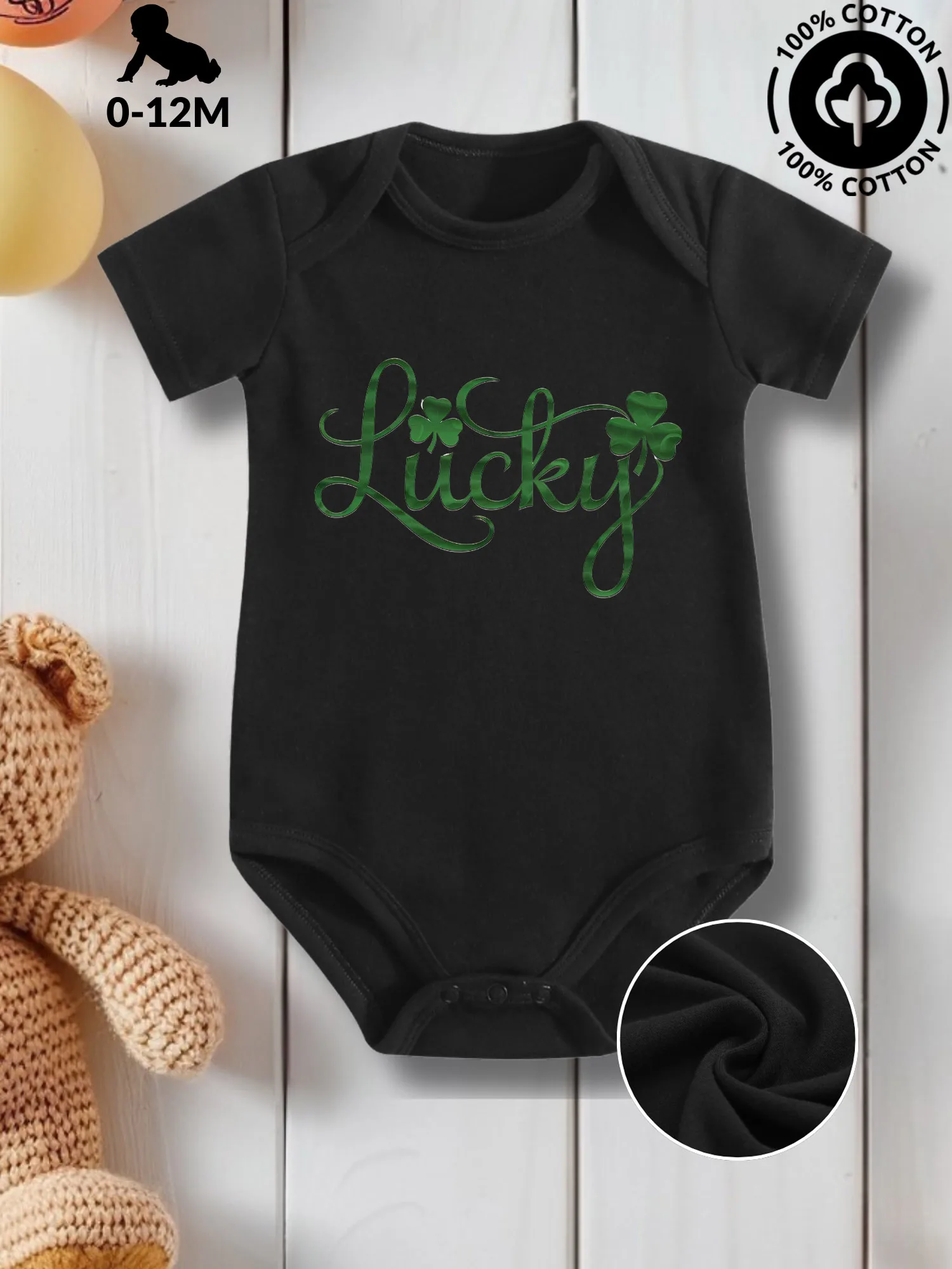Shamrock Lucky Unisex Baby Crawling Suit, Pure Cotton Skin Care Onesie, All-Season Wear Black Bodysuit 190GSM $3.94