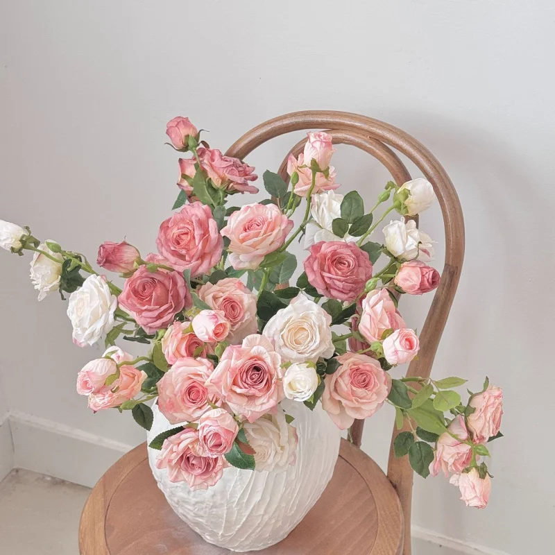8PCS/22 Inch 3 Head Vintage Burnt Edge Rose Bouquet Artificial Flowers Oil Painting Style Faux Dried Flower For Home Decor $10.00