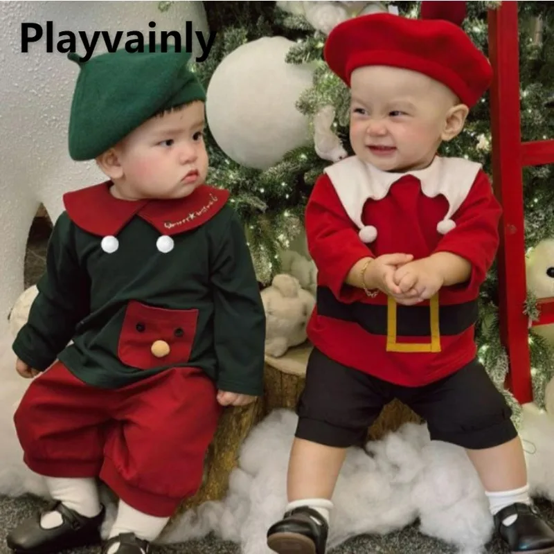 2025 New Christmas Baby Clothes Set Korean Style Long Sleeve Red Green Outfit Baby Girls Boys Cute Holiday Party Suits A8186 $29.24