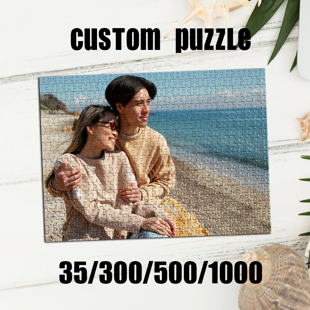 35/300/500/1000pcs Personalized Custom Photo Puzzle Customize Couples' beach Picture Gift, Personalized Puzzle Family Photo Puzz $5.49