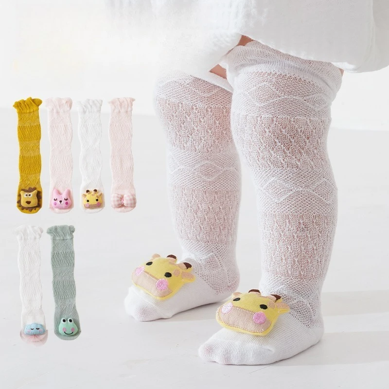 2 Pairs Summer Thin Cartoon Doll Comfortable Long Tube Socks Summer Thin Cute Baby Long Tube Mosquito-proof Socks $4.63