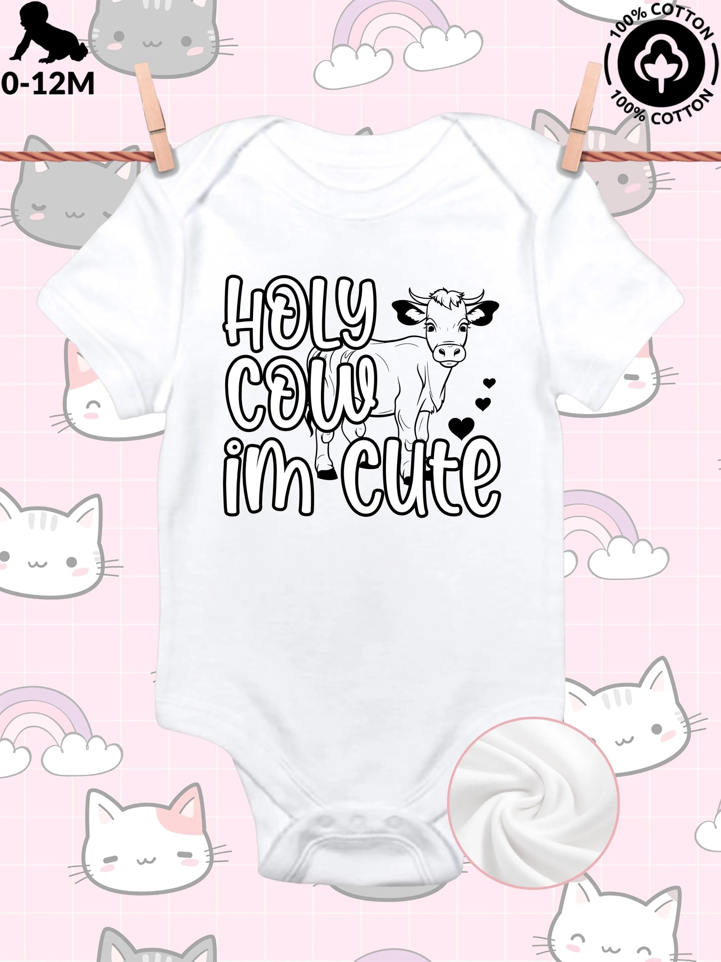 Cute Holy Cow Unisex Baby Crawling Suit, Pure Cotton Soft Onesie, All-Season Wear White Bodysuit 190GSM $6.10