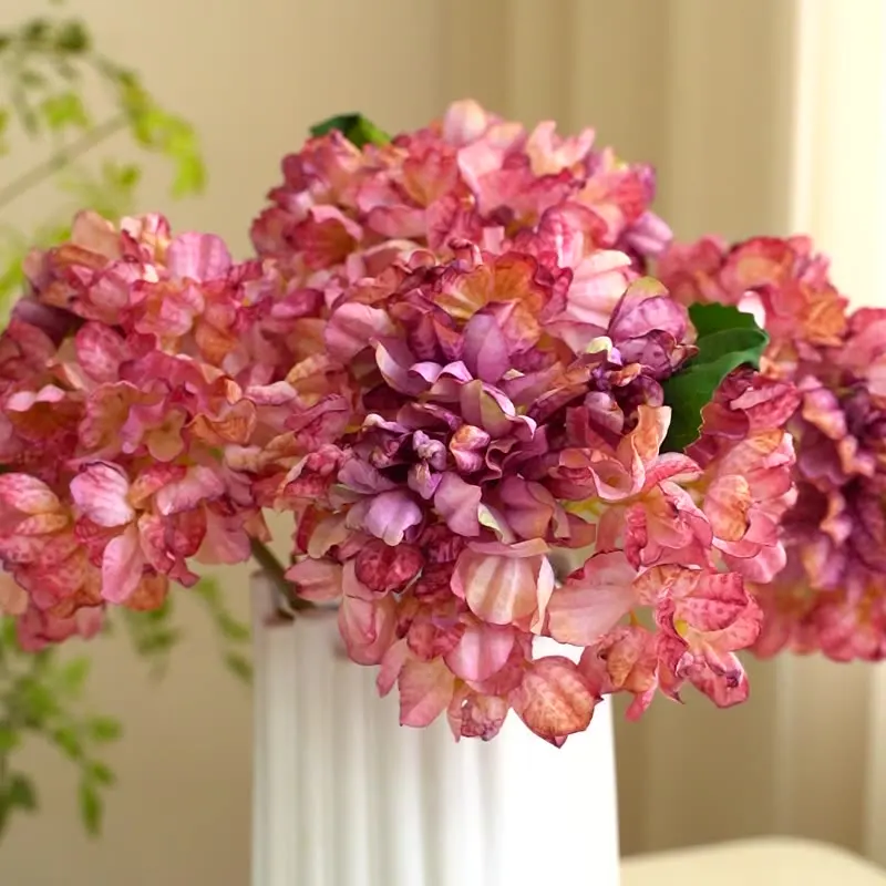 Artificial Flowers Wedding Home Bedroom Table Decor Bridal Bouquet Garden YardFake Silk Roses Hydrangeas Vase for Board Outdoors $3.82