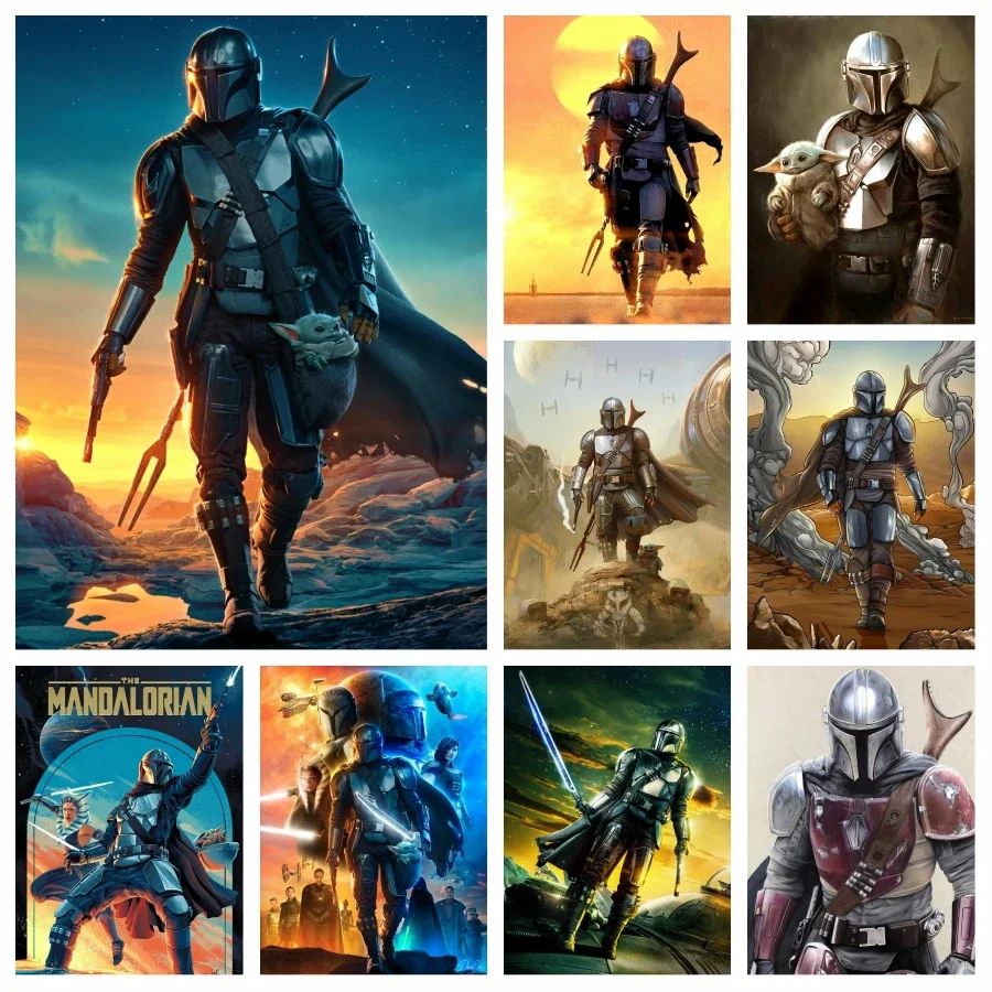 Star Wars The Mandalorian TV Show 5D Full Diamond Painting Pedro Pascal Din Djarin And Baby Yoda Photo Art Cross Stitch Decor $6.12