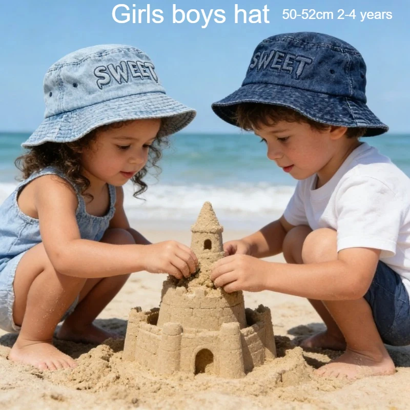 Japanese Retro Kids Bucket Hat 50-52cm 2-4 Years Letter Distressed Casual Fashion Versatile Street Travel Baby Sun Hat $5.51