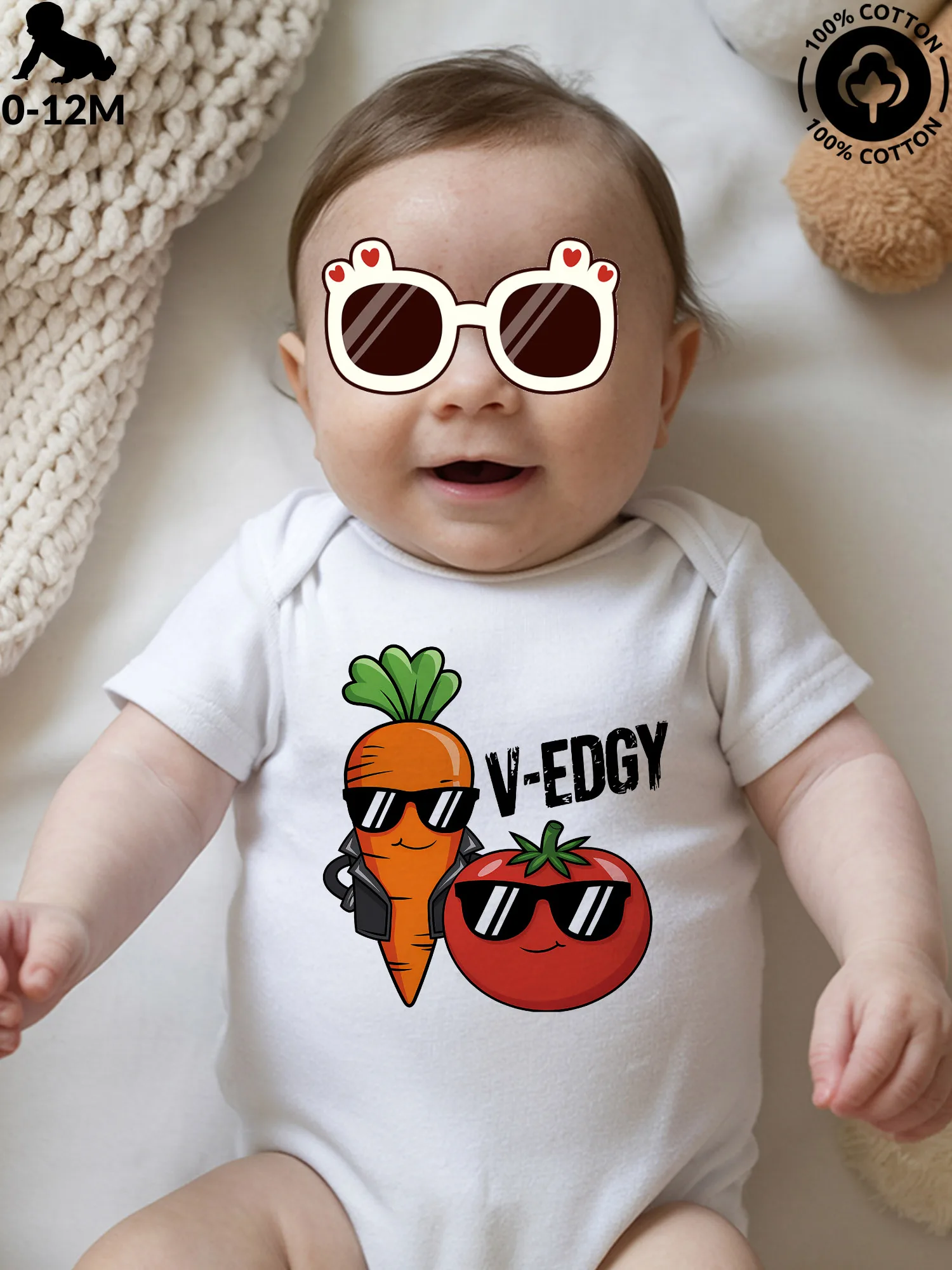 V-Edgy Carrot And Tomato Unisex Baby Crawling Suit, Pure Cotton Soft Onesie, All-Season Wear White Bodysuit 190GSM $5.62