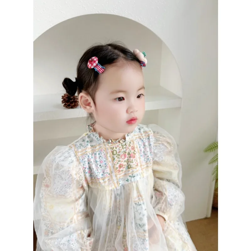 Cute Red Plaid Flower Hair Clips Korean Style Fabric Kids Side Bang Barrettes Set Girls Hair Accessories Kids Headwear $3.50