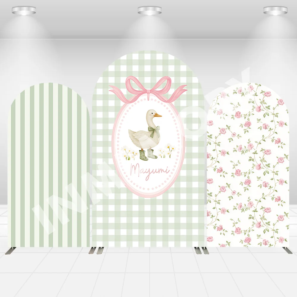 Green Grid Goose Photo Backdrop Arch Cover Cute Duck Baby Shower Decor Birthday Background 2-Side Baby Shower Party Decor Banner $27.00