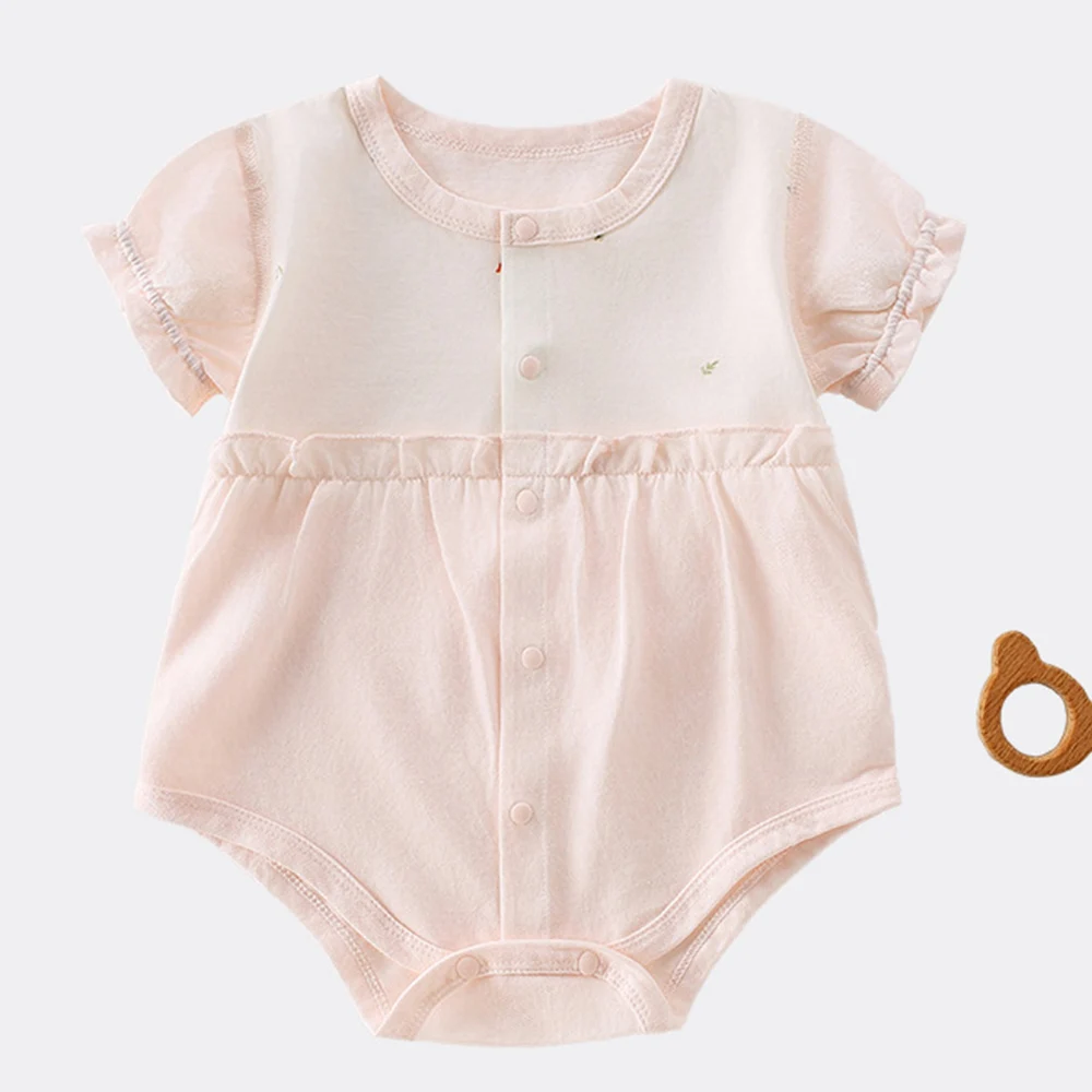 Baby Girl Bodysuit Short Sleeve Ruffles Patchwork Newborn Summer Clothes Soft Breathable Thin Infant Romper $2.63
