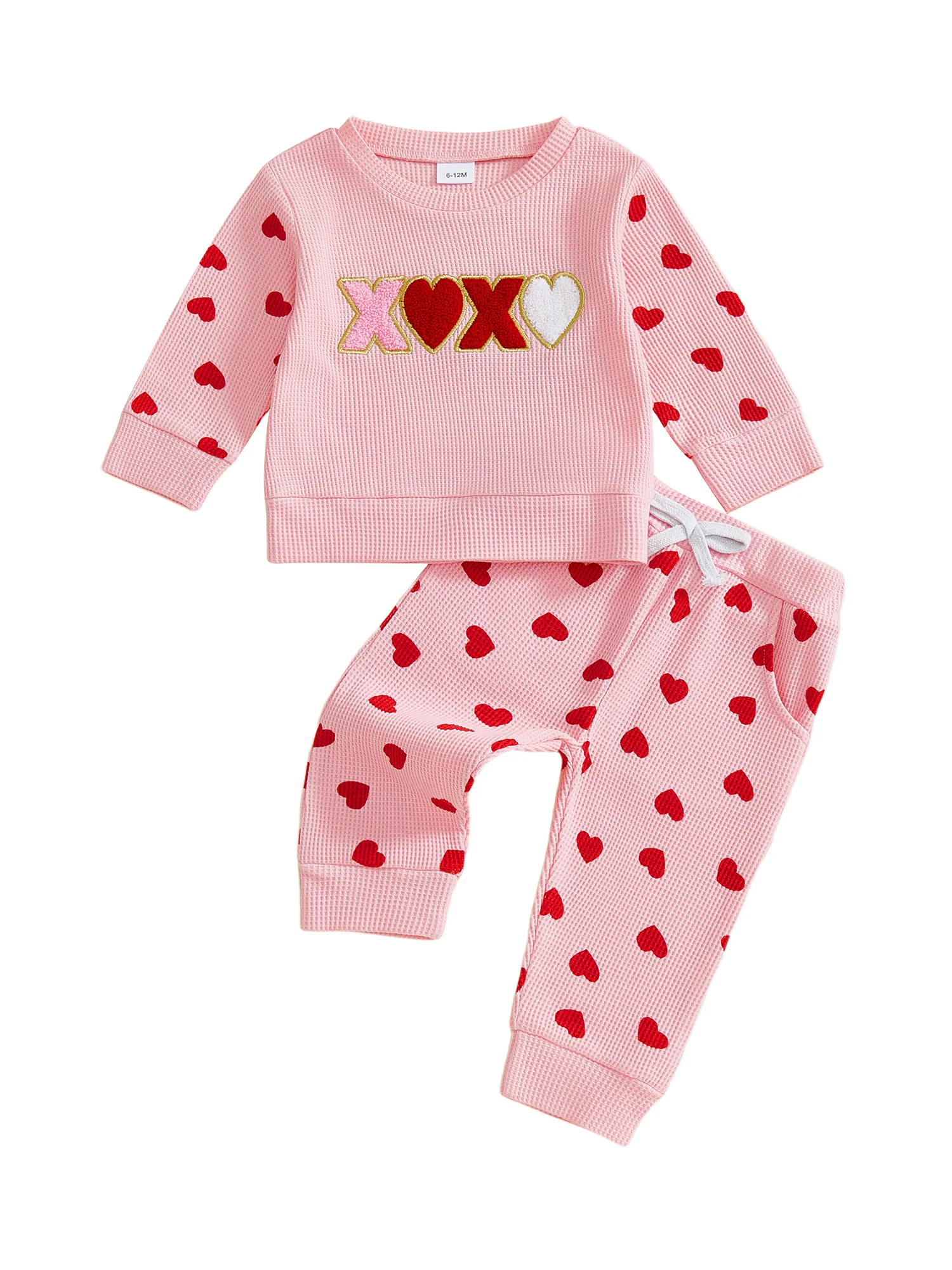 Baby Girl Valentine s Day Clothes Love Heart Embroidery Ruffle Sleeve Top Pink Heart Leggings 2 Piece Set for Toddlers $21.19