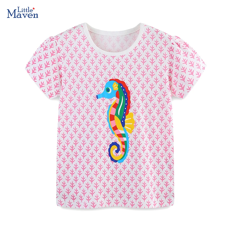 Little maven Baby Girls Children's Clothing 2026 New Summer Kids Clothes Korean Children's Clothes Cartoon Seahorse T-shirts $9.59