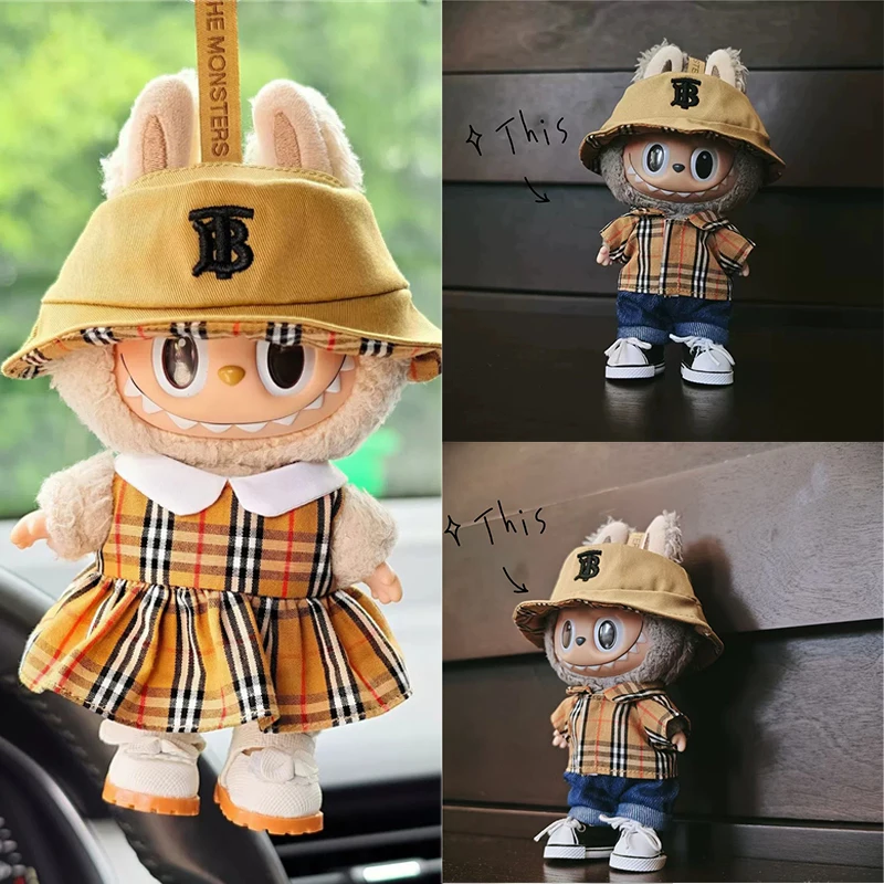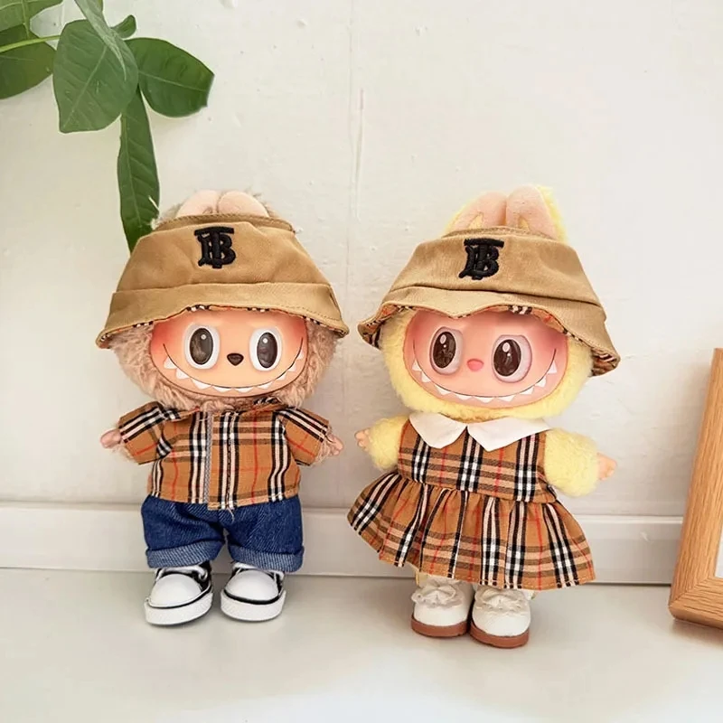 15 17cm For Labubu Doll Classic Dress Skirt Outfit Clothes Luxury Fisherman Hat Plaid Shirt Bag Shoes Set Clothing Accessories $4.65