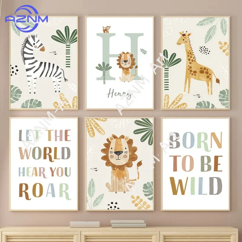 1PC/6pcs Nordic Cartoon Animal Lion Zebra giraffe children's room baby bedroom background wall poster $3.48