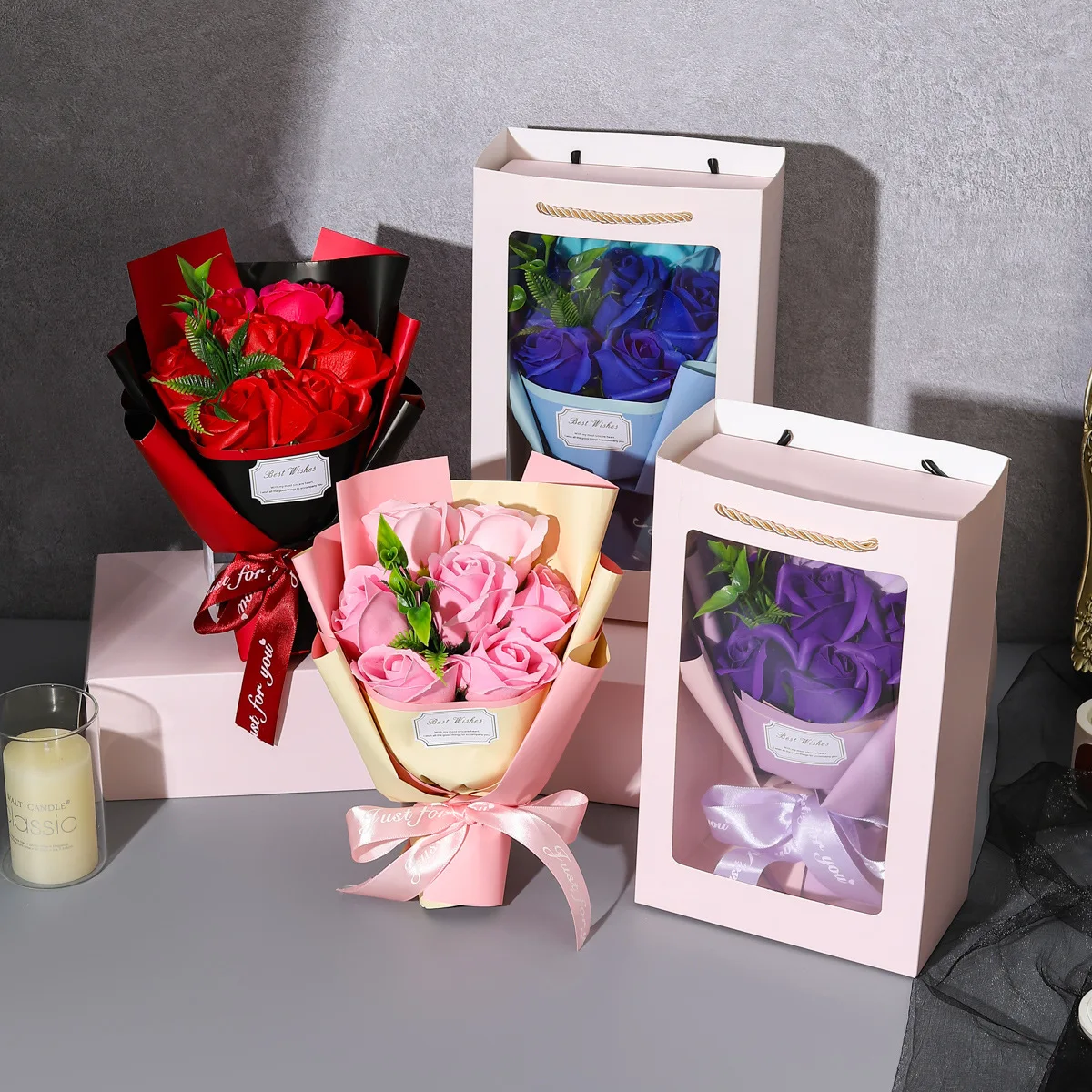 Romantic Fake Rose Bouquet in Gift Box with Cute Teddy Bear Premium Soap Flower Arrangement Perfect Gift for Valentine's Day $9.48