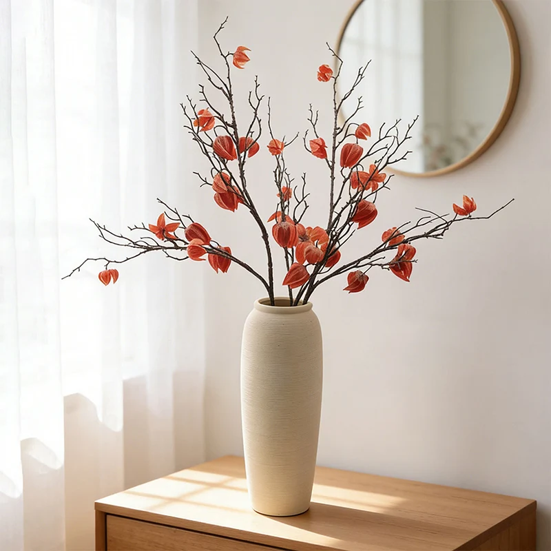 Lantern Fruit Artificial Flower Silk Luan Tree Dried Fruit Flowers New Year's Fake Flowers Autumn Wedding Simulated Flower Decor $10.28
