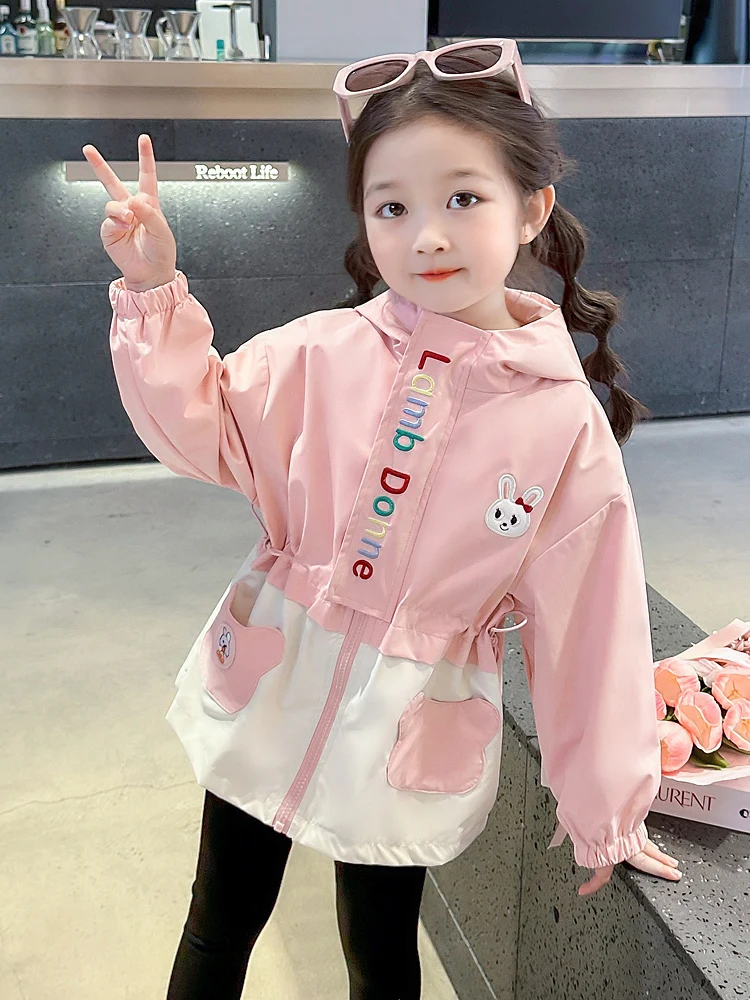 Girls' Waist-Cinching Mid-Length Coat Spring Autumn Faionable Cartoon Sle Kids' Outerwear Baby Girl's Autumn Jaet $26.59