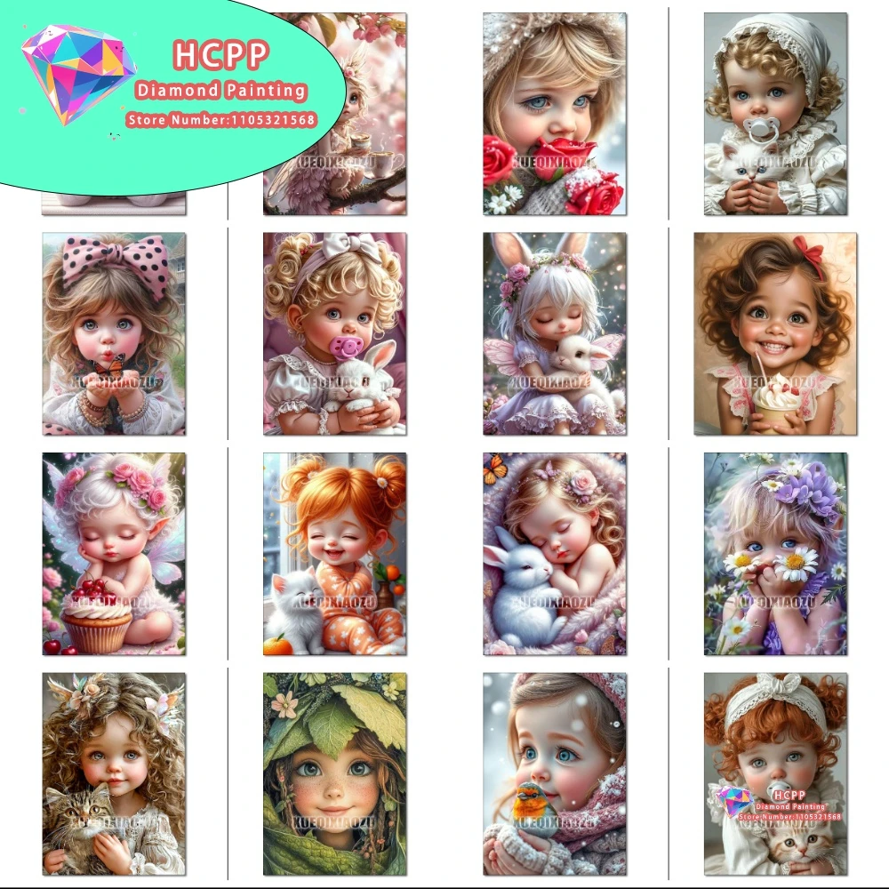Cute Sweet Baby Girl Diamond Painting Kit Square Round Diamond 5D DIY Mosaic Handmade Art Unique Exquisite Gift Home Decor $7.63