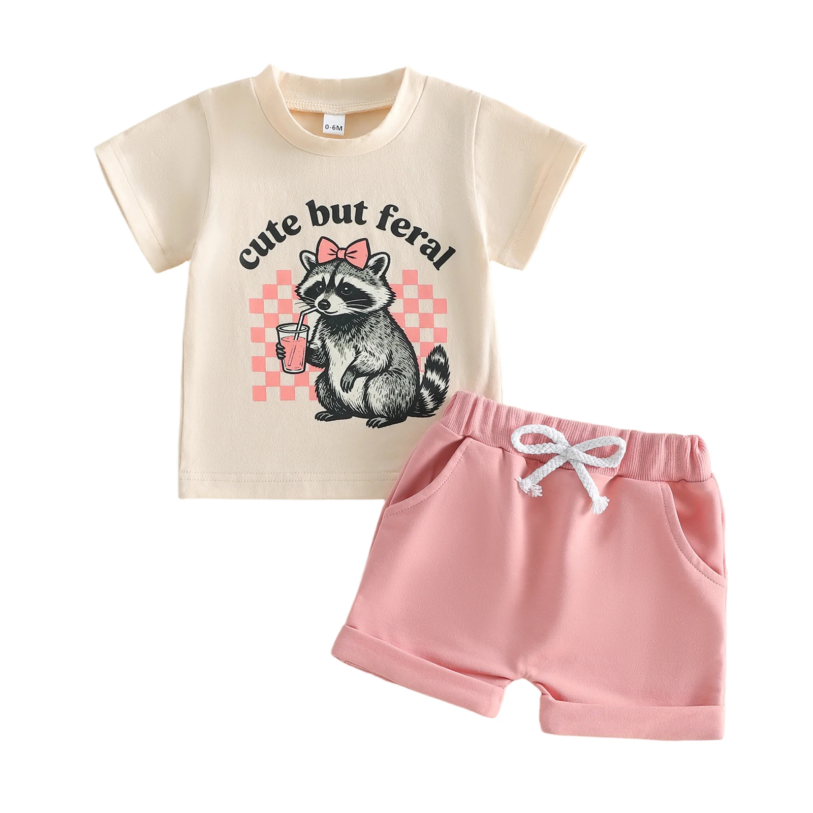 Toddler Baby Girls Summer Outfit Fashionable Short Sleeve Raccoon Print Tops with Shorts 2Pcs Set $5.64