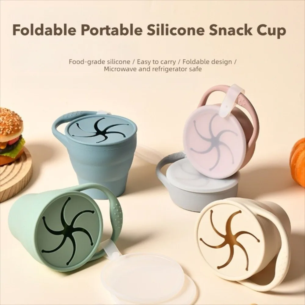 Foldable Design Portable Food Storage Box Solid Color Portable Design Baby Snack Cup Silicone With Lid Food Storage Cup Kids Use $8.26