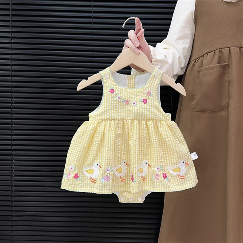 2025 Summer Toddler Baby Girl Cotton Romper Dress Sleeveless Duck Floral Embroidery Bodysuit Newborn Princess Dress Rompers $6.69