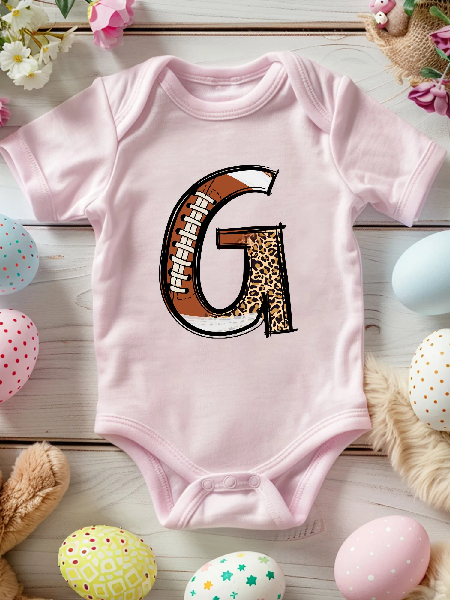 Leopard Football Alphabet G Unisex Baby Crawling Suit, 100% Cotton Soft Onesie, All-Season Wear Pink Bodysuit 190GSM $6.11