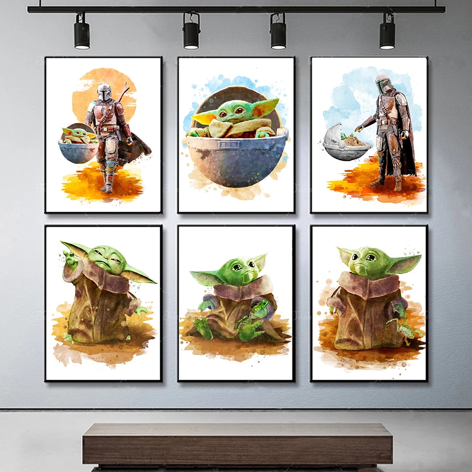 Classic Movie Posters and Prints Baby Grogu Mandalorian Canvas Painting Wall Art Decor Pictures Child Baby Yoda Child Room Gi $4.61