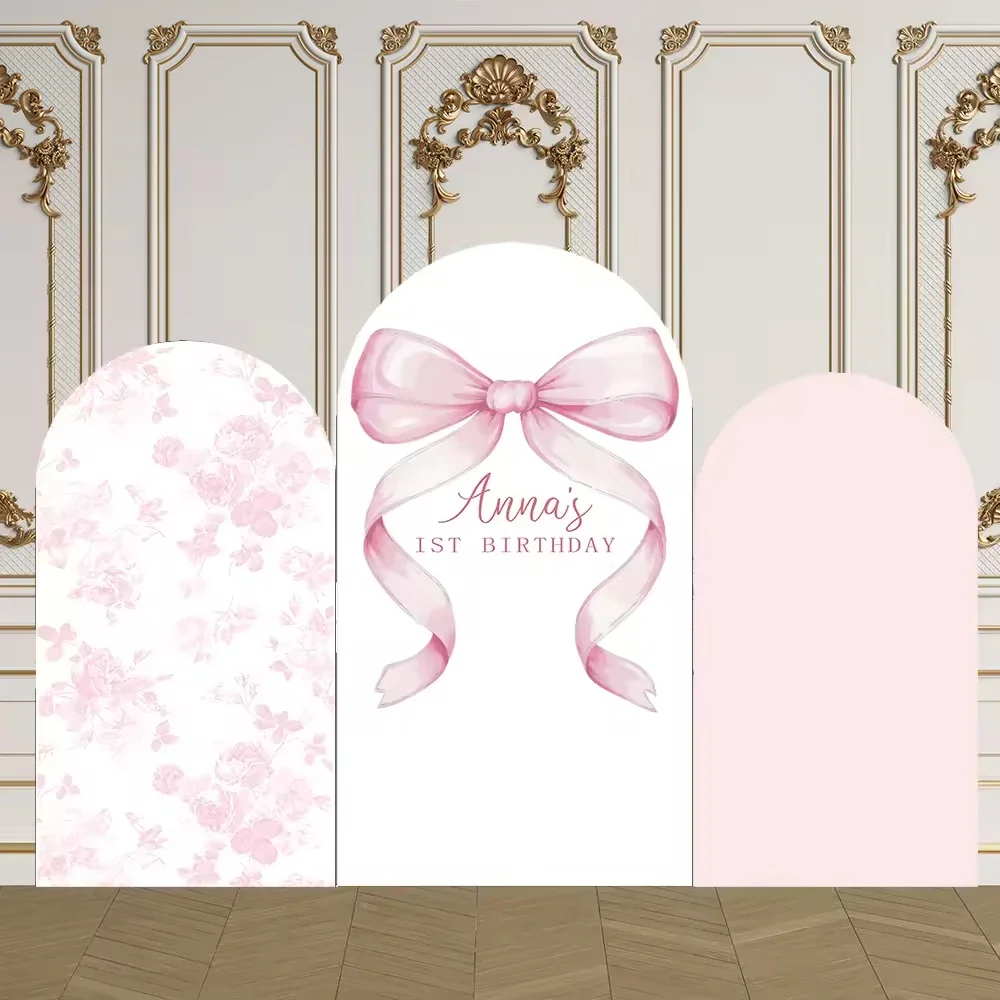 VIKAMA Pink Ribbon Arched Background Cloth for Baby Shower Birthday Party Decoration Banner Props Photography Background $12.72