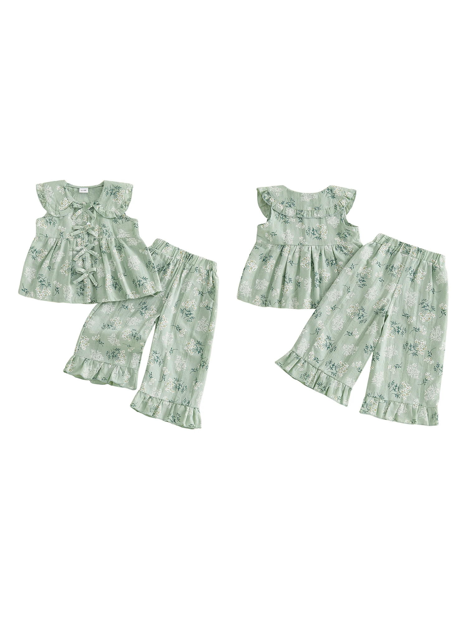 Adorable Infant Girl s Summer Ensemble with Cute Bow Floral Print and Ruffled Trim - Sleeveless Top and Pants Set for a $7.03
