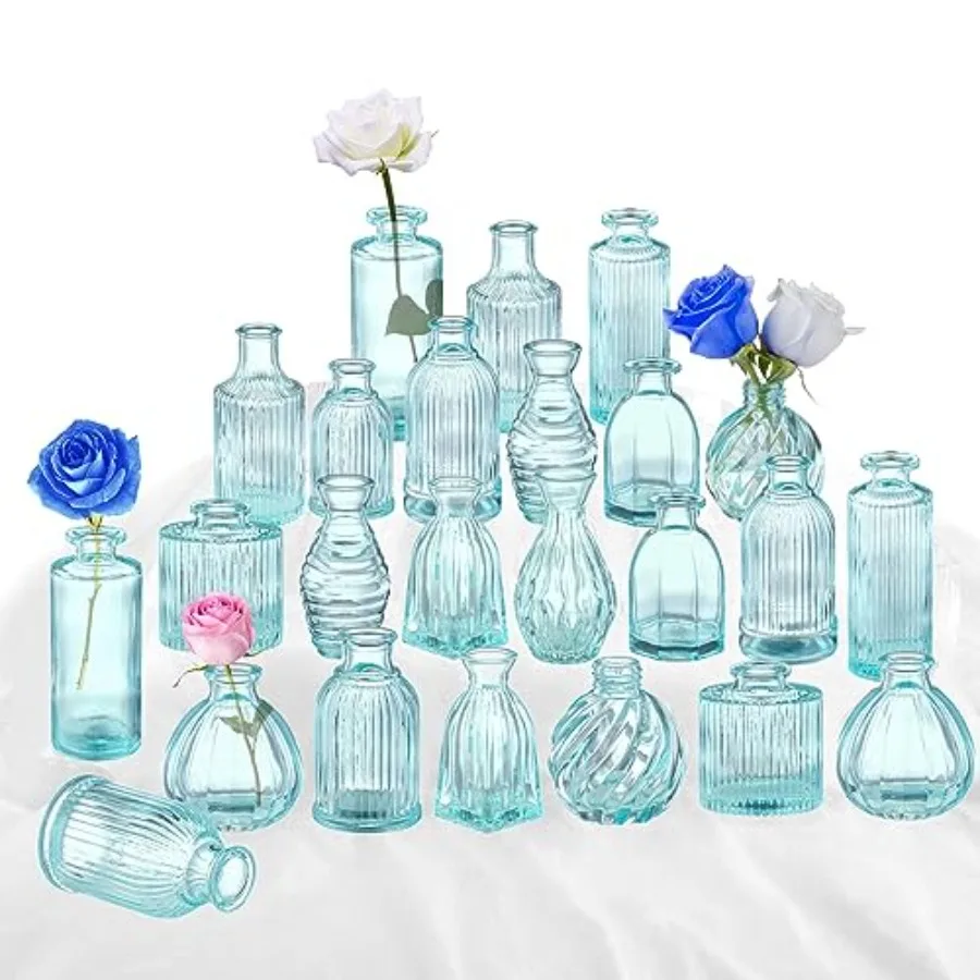 Bud Vases in Bulk 24 Glass Vase Small Vases for Flowers Modern Ribbed Glass Bud Vase Wedding Flower Vase Decor Baby Shower Part $71.16