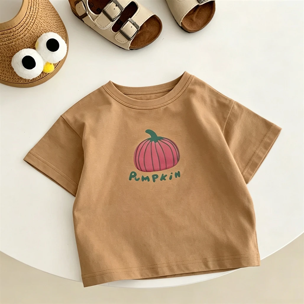 Cute Tees Short Sleeve Baby Boys Girls Fashion Casual Summer Clothes Round Neck Base Shirt Pumpkin Print T-shirt For Children $4.55