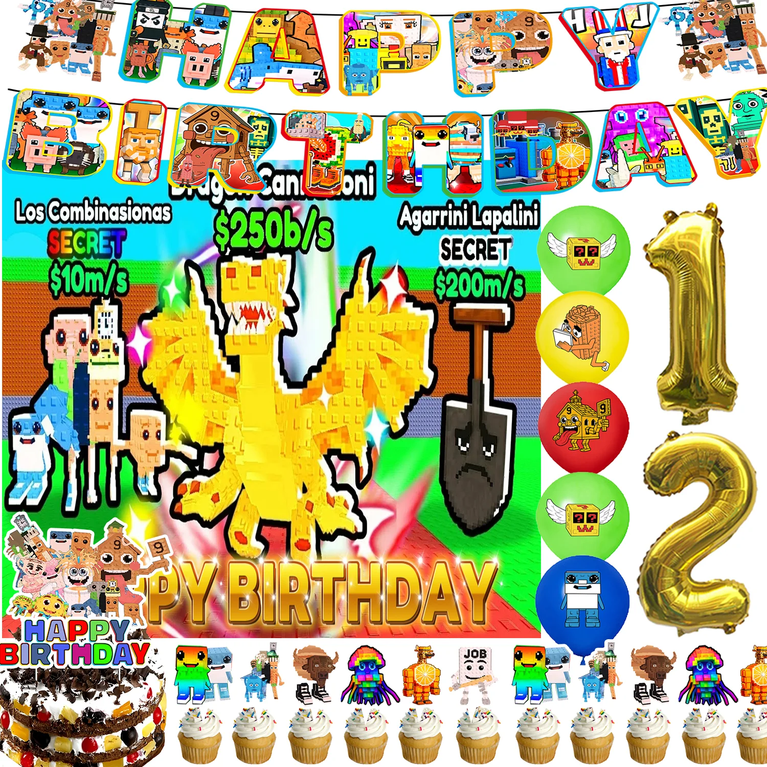 Game-Steal a Brainrot Theme Kids Birthday Party Supplies Decoration Balloon Cake Topper Banner Background Baby Shower Props Gift $8.74