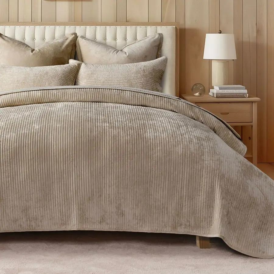 Velvet Quilt Set Queen Size, Luxurious Soft Quilted Bedding Sets, Lightweight Velvet Comforter for All Season, Striped Channel B $113.67