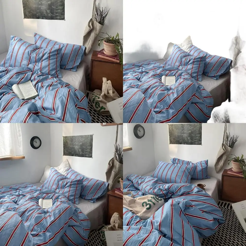 Vintage Striped Blue Duvet Cover Queen - 100% Cotton Red Stripes 3-Piece Bedding Duvet Cover Set with Zipper Closure, Soft & Bre $59.88
