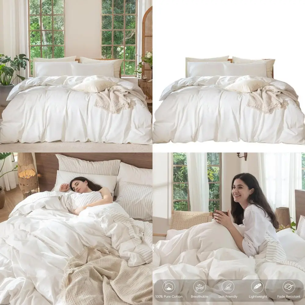 Bedding Duvet Cover Set 100% Washed Cotton Linen Like Textured Breathable Durable Soft Comfy (Solid Off White, Queen 90"x90") $72.14