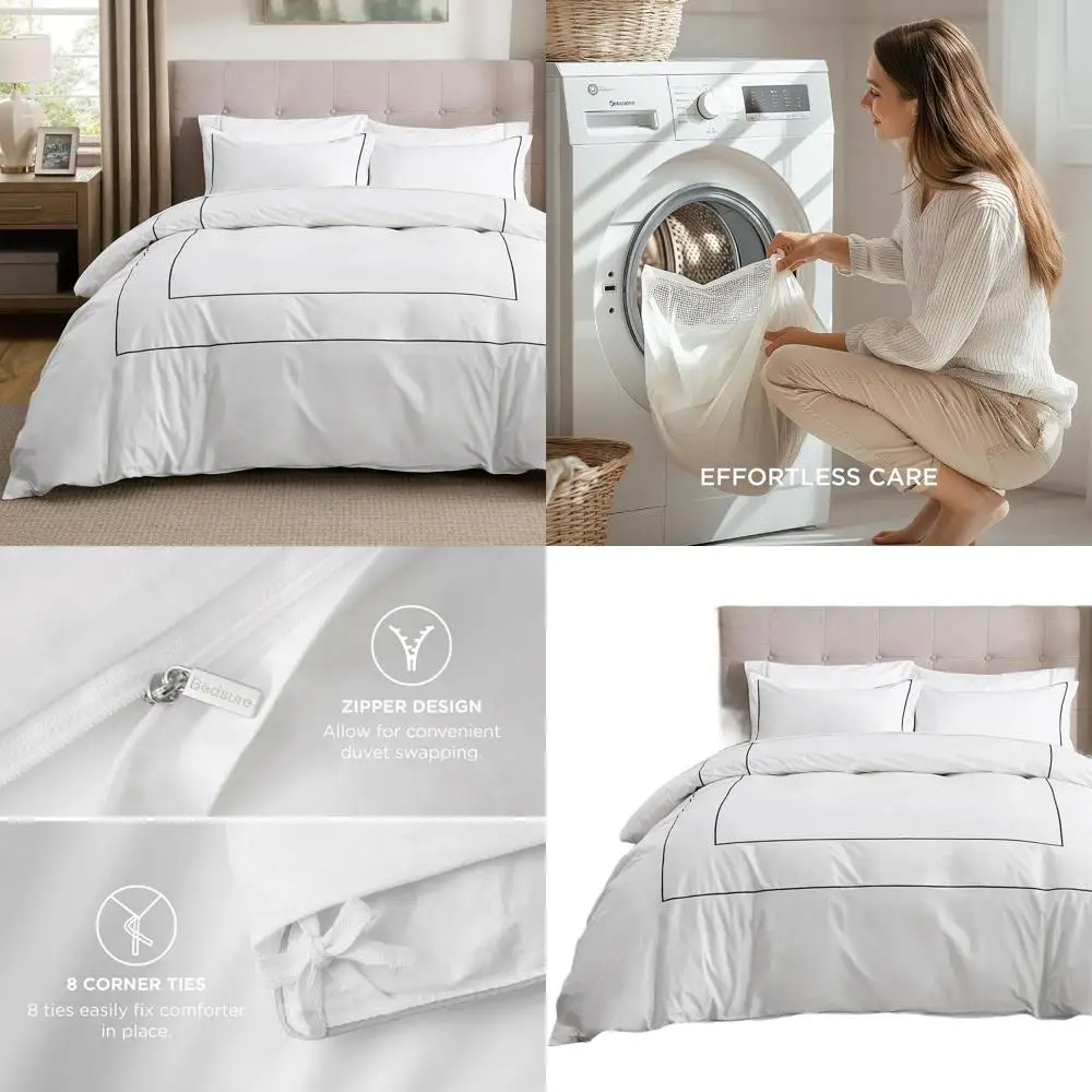 Luxury Hotel Duvet Cover King Size, 100% White Cotton Embroidery Bedding Set, Includes 1 Duvet Cover 104x90 Inches with Zipper C $87.60